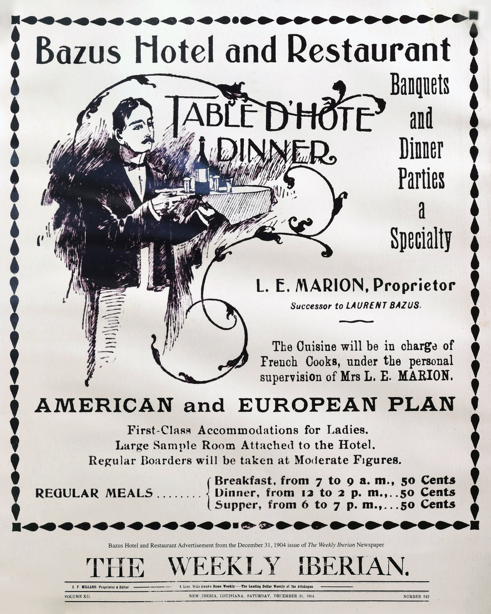 Laurent Bazus purchased this property in the early 1880s, when the building was already decades old. In 1885, he opened the hotel and restaurant that quickly became a downtown landmark.